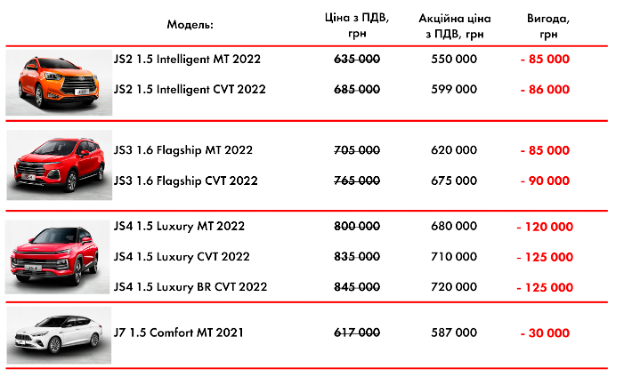 За деталями акції звертайтесь до консультантів відділів продажів в офіційній мережі JAC у Вашому місті.